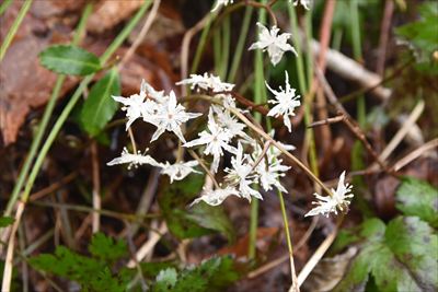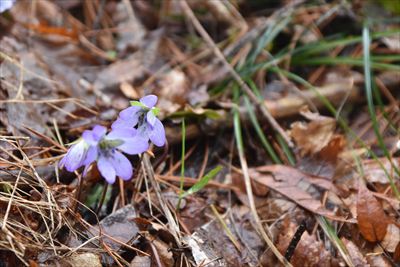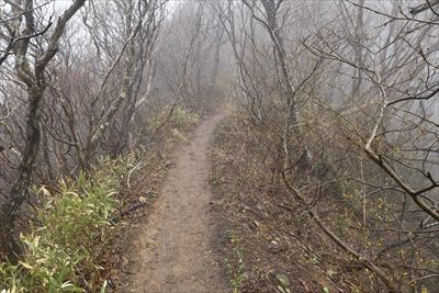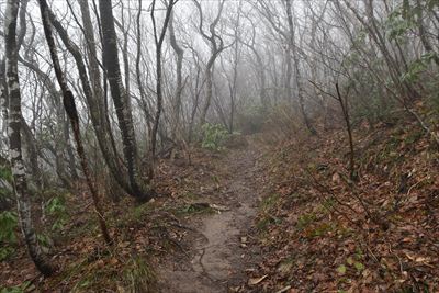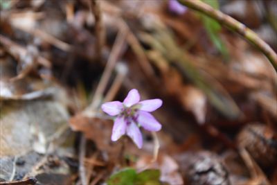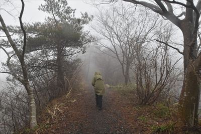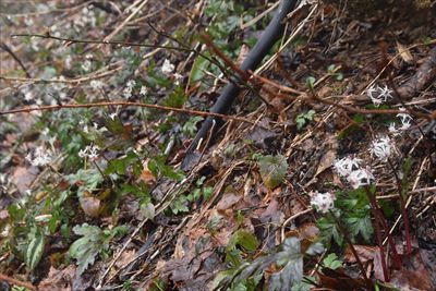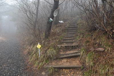 | 砂利道を歩くと残雪、雪はいいけど最後の階段は雪解けでドロドロ... |