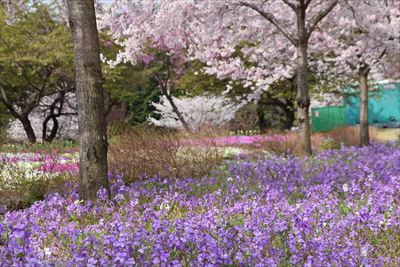 紫の花はハナダイコンではなくオオアラセイトウ、別名ムラサキハナナらしい