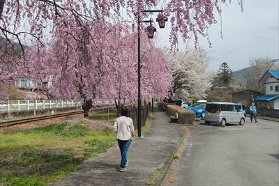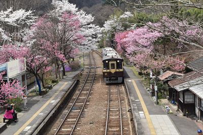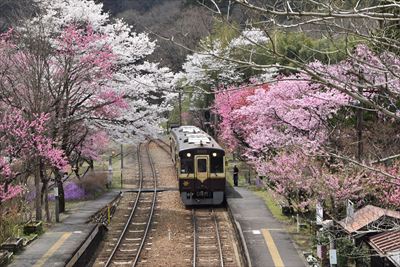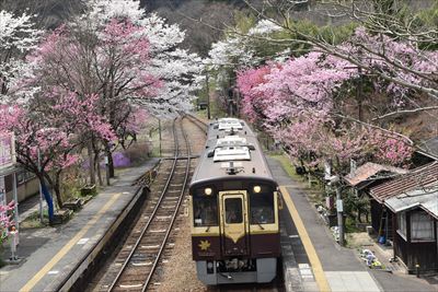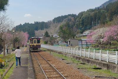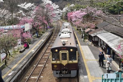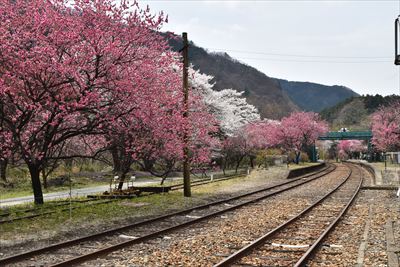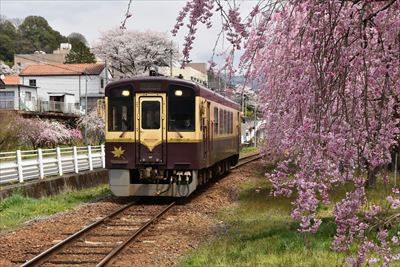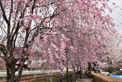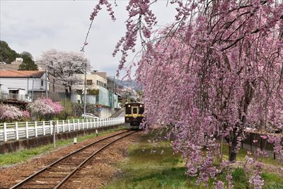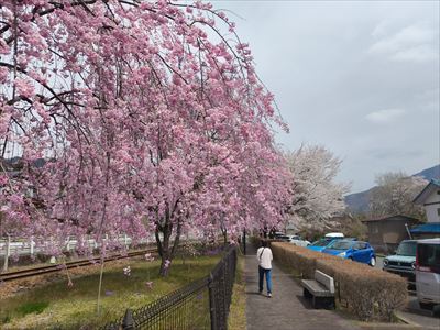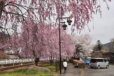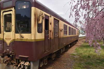 | 花輪駅の枝垂桜がきれいだったので寄ることに ちょうど列車が入ってきてラッキー♪ |