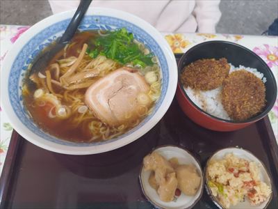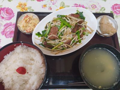 | 僕はレバニラ定食(次回はタンメンにしよ) | 奥さんはソースカツ丼&ラーメンのB定食 |