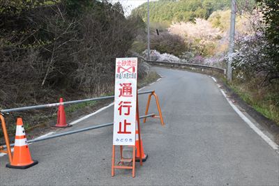 | 通行止めの先ですが、土砂崩れは片付いているそうです (自転車、歩きだと注意して通行できるようです、が推奨はいたしません) Uターンします |