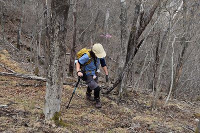 行止りベンチで休憩してたらジムニーさんがもう登って来た