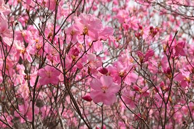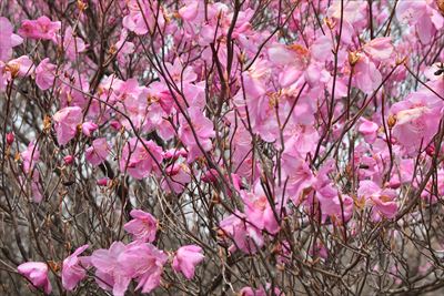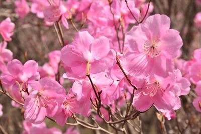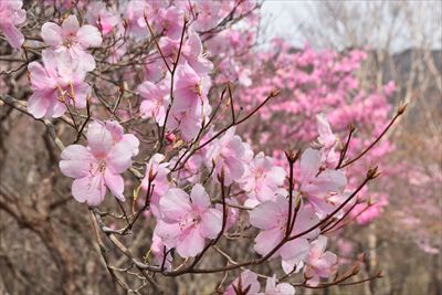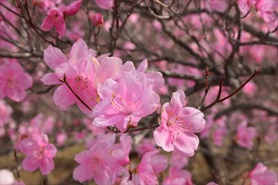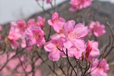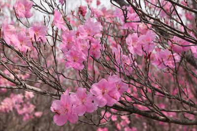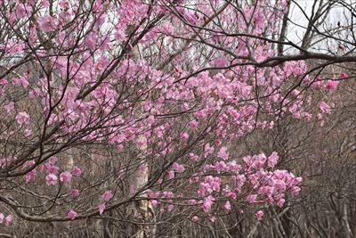 | 去年は霜涯でほぼ全滅だったアカヤシオの森、楽しめました♪ |