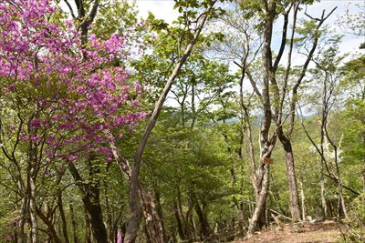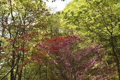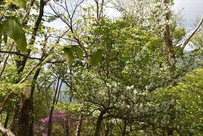 氷室山から戻る頃に陽が差してきてシロヤシオも映える♪