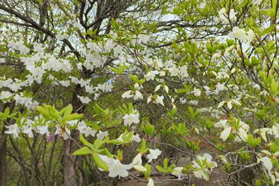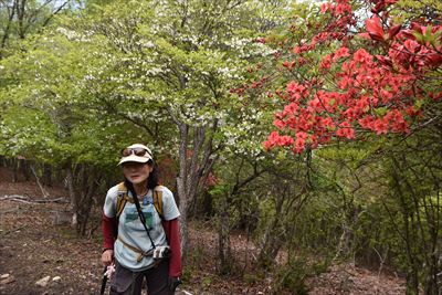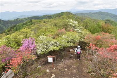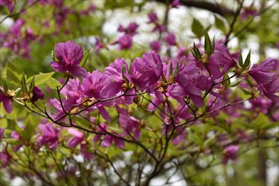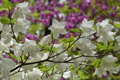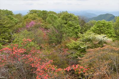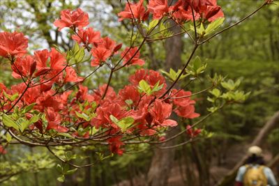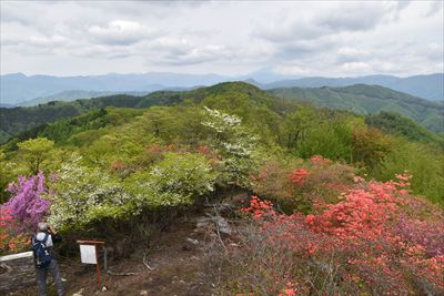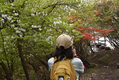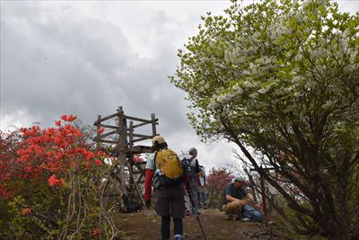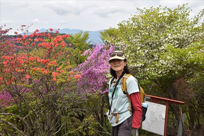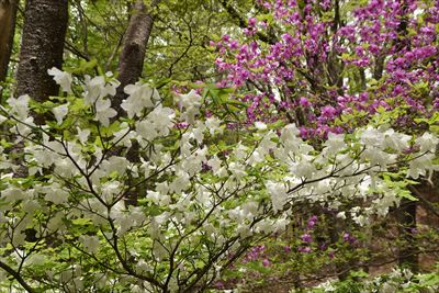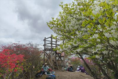 櫓(やぐら)の上から3色つつじ、タイミングばっちり