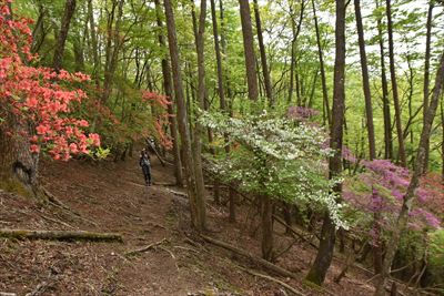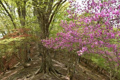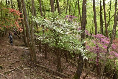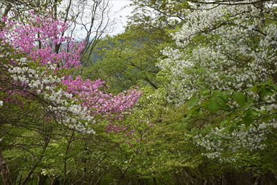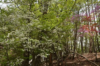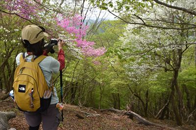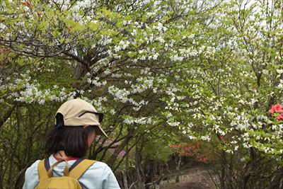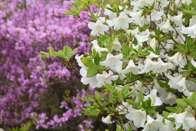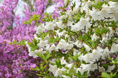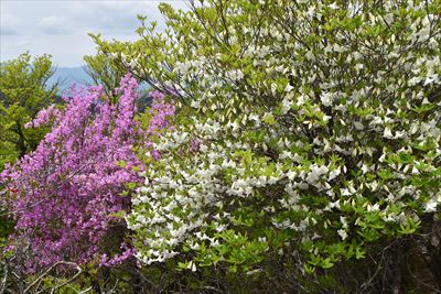 シロヤシオをミツバツツジバックに