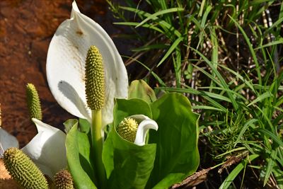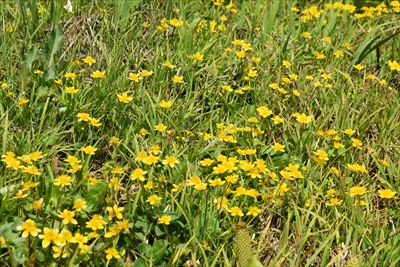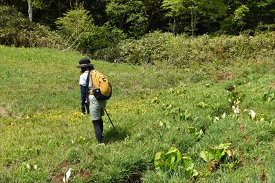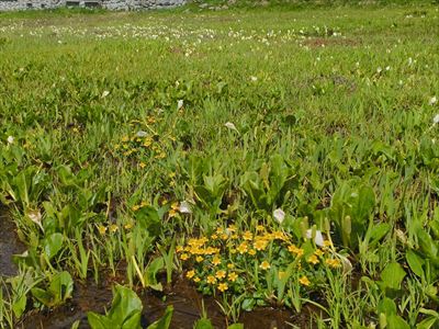 | 湿原の入口でリュウキンカ、水芭蕉 |