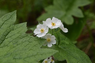 | あれっ、写真撮らなかった? 1ヶ所目のサンカヨウの所で水沢山常連のtowa-moaさん達とバッタリしました (ハイキング後、あしまで焼きカレー・ランチ、ふれあい交流館で日帰り温泉、と満喫でしたね♪) もう少し早い時期だとシラネアオイ、タムシバ、ショウジョウバカマ、イワウチワ、ムラサキヤシオなど新潟で見られる花も咲くそうです (でもサンカヨウがお目当てなので...) |