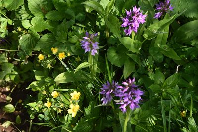 ハクサンチドリと黄色い花(ミヤマキンポウゲ、ウマノアシガタ)