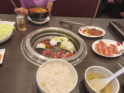 | 元気カルビ、元気ハラミ、牛タンさがりと白米&スープ 奥さんは盛岡温麺と牛レバー、野菜焼 |