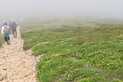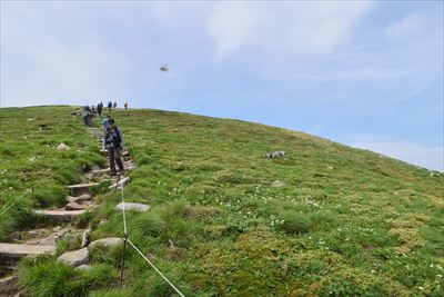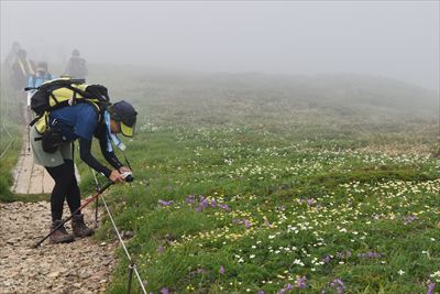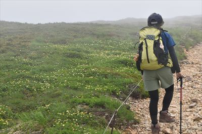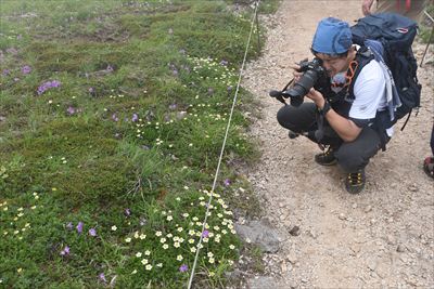 | 仙ノ倉山から下りて来たジムニーさんとベンチに戻り休憩(2回目のランチ) 新しいNikonのミラーレスの画像はきれいです♪ カメラも腕もいいのでしょう ⇒ ジムニー(Jimny Hiker)さんのブログ 花撮影を続けるというジムニーさんと別れ、花撮影しながら平標山に登り返し |