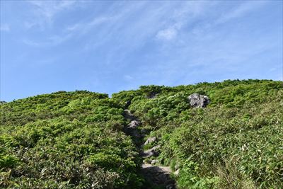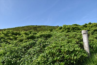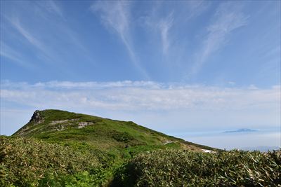 | オモワシ山?上に見えるピークかな? 「オモワシ山:真の頂を隠して、自らを頂上と「思わし」めることに由来」 ⇒ ピークは見えてないみたい |