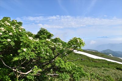 | 行者返し | ナナカマド越しの鳥海山 |