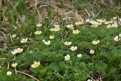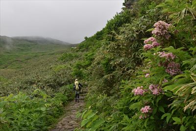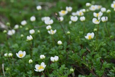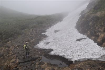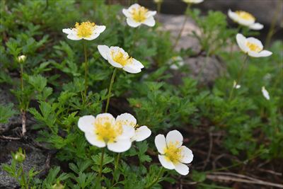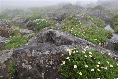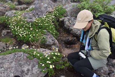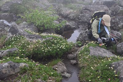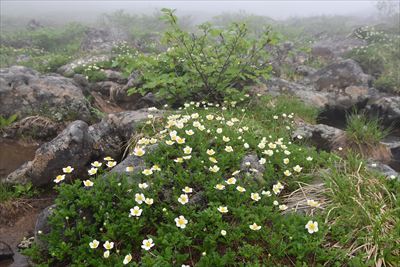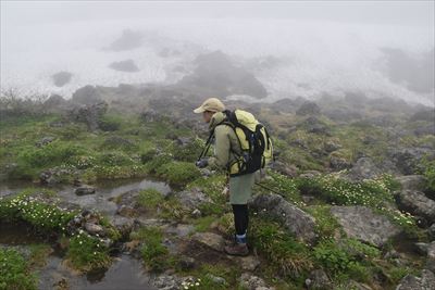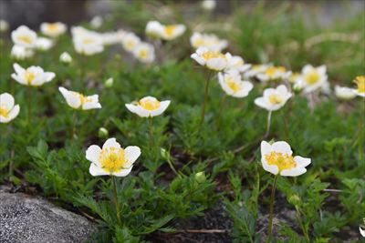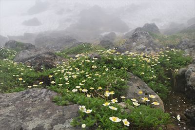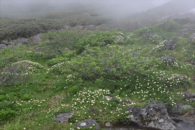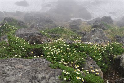 賽の河原手前、雪渓の前にチングルマのお花畑♪