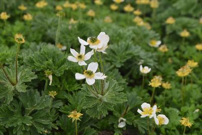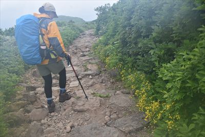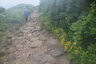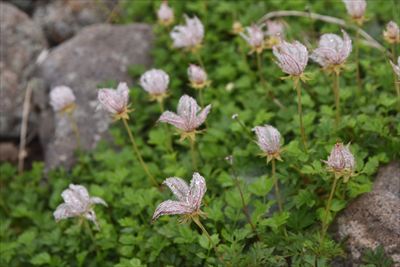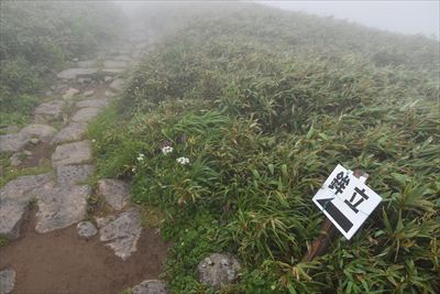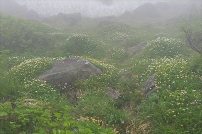 | 下山 往きに見落としたサンカヨウ、往きより咲いた?ニガナは撮るけど チングルマはガスガスで映えないのでほぼパス |