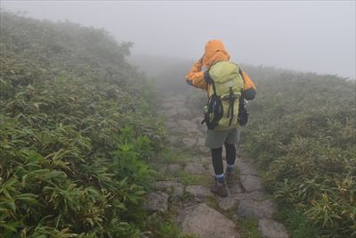 | 御浜小屋で引き返す方がほとんど 鳥海山山頂に向かった若者達(ふたり組、単独)は大丈夫だろうけど 笙ヶ岳方面に向かったご夫婦はどうしたかな? |