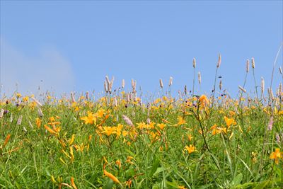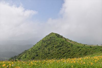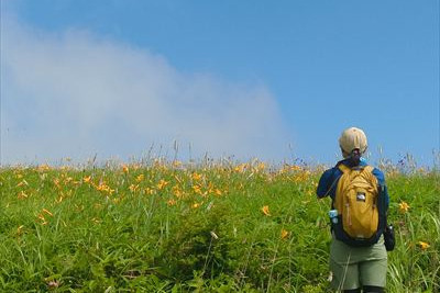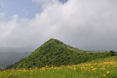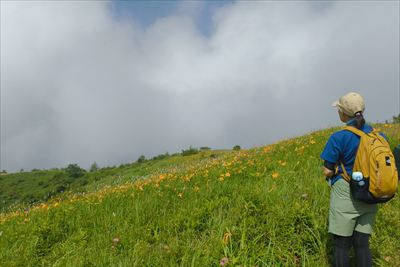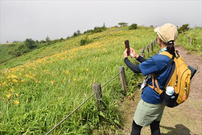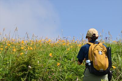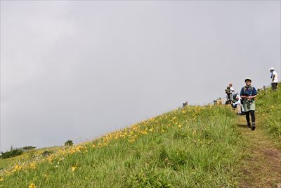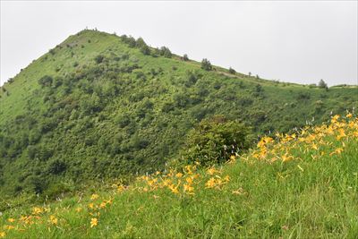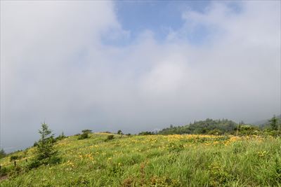 | 飯盛山の方だと曇り空、青空バックがいいので大盛山の山頂下から山頂の方を撮る |
