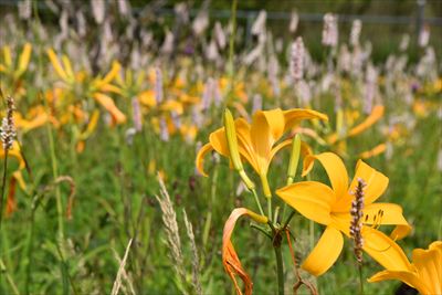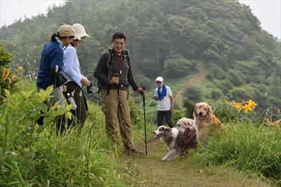 | しばし休憩 さっき会ったわんこ達もやってきた 目の青い14歳のボーダーコリーと6歳、7歳後輩わんこ 奥さんがちびさくらで写真撮ってたら犬連れの女性からお声がけ、長野のヤマレコユーザーさんでした |