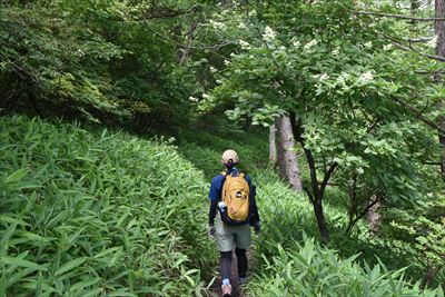 | 帰りは下るだけ、ではなくリハビリなので平沢山経由で 結構な登り坂です...暑くなってきたし |