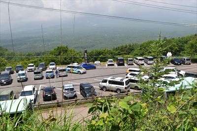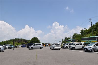 | 駐車場に戻ったら凄い混雑! 大型バスが4台?路駐してるし、乗ってた子ども達が獅子岩に行っている間に駐車場でUターン始めるし... (路駐禁止なのでバスは少し下の臨時駐車場へ行って欲しかったな、後から来た車が臨時駐車場へ行ったようです) |
