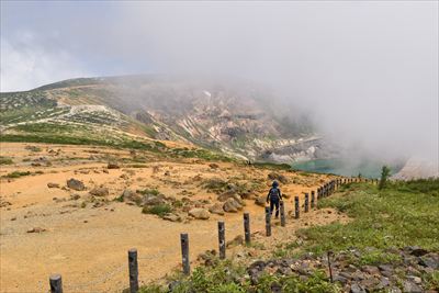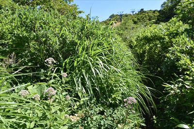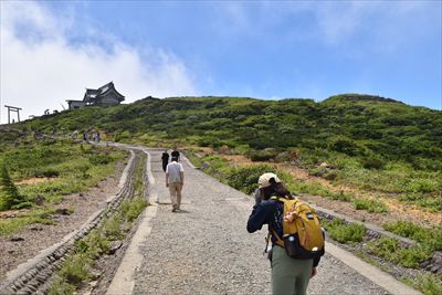 | お釜リフトに乗らないで...登山道が脇にありました 歩く人は少なそうな道だね、暑いです |