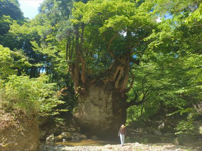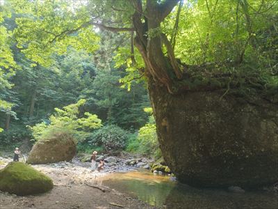 | いろいろ悩んだ結果、兄推奨の五城目町「ネコバリ岩」へ ※漢字で書くと「根古波離」 さくら連れにぴったりのスポットでした |