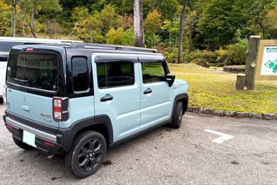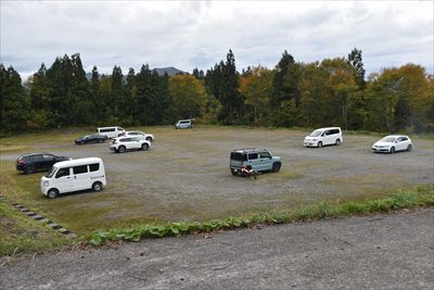 | 僕の下山に時間がかかったので、駐車場に残った車の少ないこと... 奥さんが14:49着なので25分遅れ...奥さんは椅子に座って読書中 |