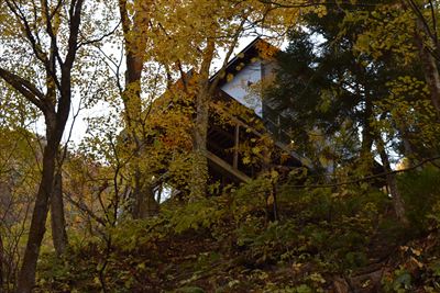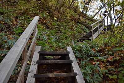 | 階段を登っていくと建物が!これが「根子岳山荘」かな mikkoさんちがカフェでオリジナルブレンドコーヒー飲んでたね 権現滝のビューポイントに行ってみます |