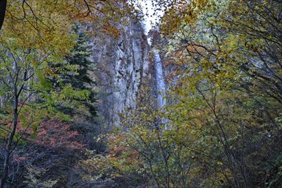 | 権現滝のビューポイントは苦労して階段を登ってきた割に、木が邪魔して大したことなかった 不動滝に周回できるようで行ってみましょう |