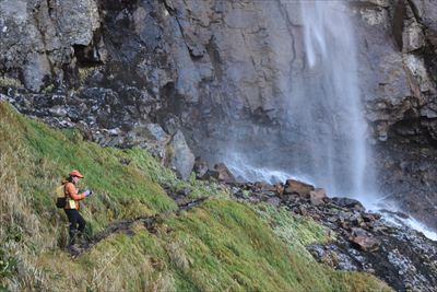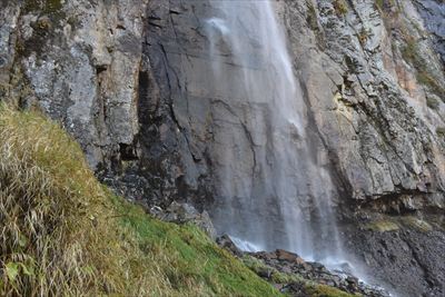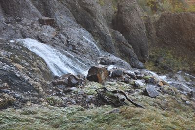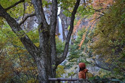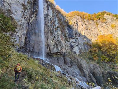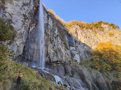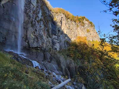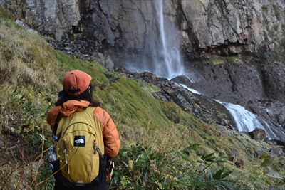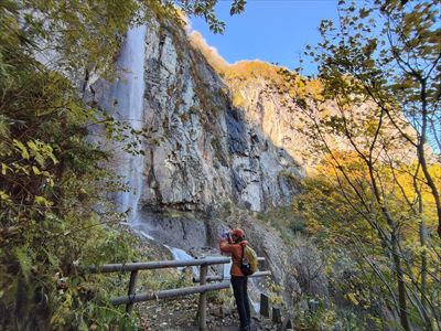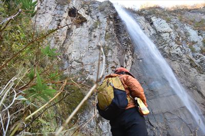 | 飛沫(しぶき)で濡れてしまうの覚悟があれば滝の直下まで行けそう と、寒くて凍っているので滑って転んでは危ないので途中で引き返しました |