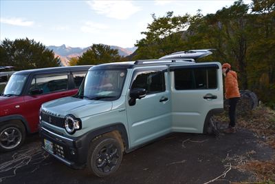 | ハスラー号、赤城ICから六日町IC〜五十沢(いかざわ)キャンプ場まで僕が運転(途中、塩沢石打SAでトイレ休憩) 日光に行く予定だったので到着が早過ぎ!平日の6時台ではキャンプ場の管理人さんも来ていない 7時頃になったら電話してみよう、と僕の携帯はつながらなかったので 福島の方にかけていただき、管理人さんに来ていただくことになりました 受付けを済ませて1番で駐車場に向かいます |
