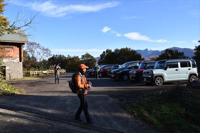 | 駐車場向かいがコース入口 | 雪が残っている巻機山 |