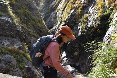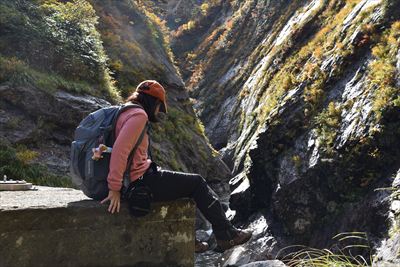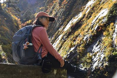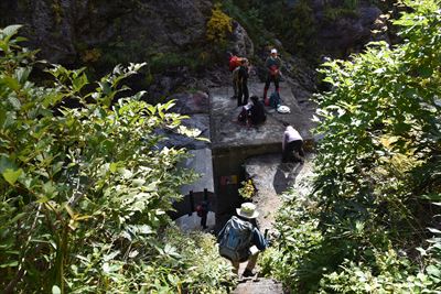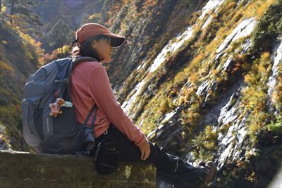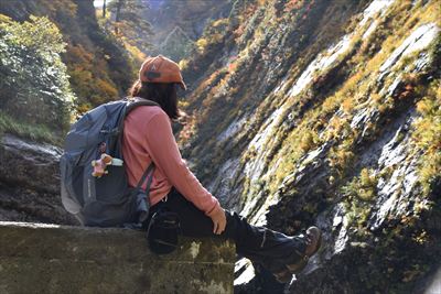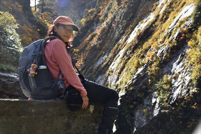 取水口のコンクリが空いて、奥さんが座ったのでモデル撮影