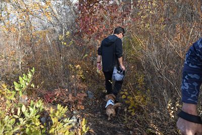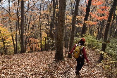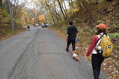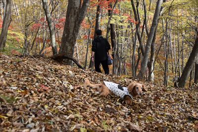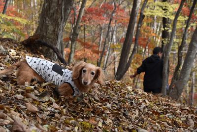 | 深い落ち葉は短いあんよには厳しいね | 14:10 登山口 |