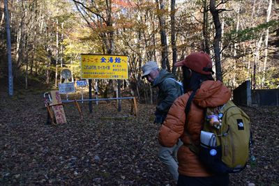 | 通勤渋滞を避けるために一応7時過ぎに霧積の金湯館駐車場に到着を狙って出発 7時半前には合流しました うちらだけだと思っていたら後から2台着 単独男性(おじさん)は山歩きでしょうが、若い男性は山歩きではなさそうな気がします 金湯館の日帰り温泉&食事の可能性もあると思って用意したけど、今日は休館でした |