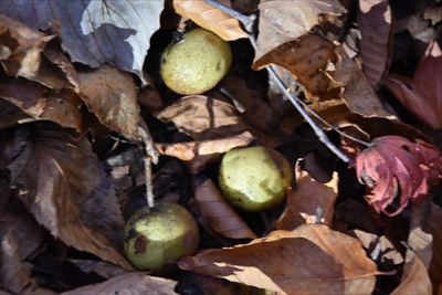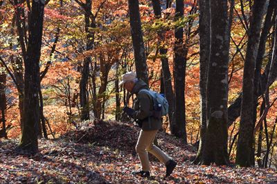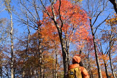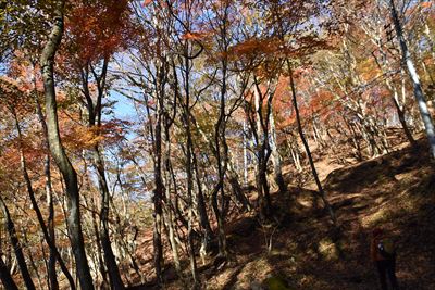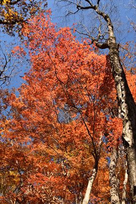 | 去年ホワイトリカーに漬けて果実酒を作ったオオウラジロノキ 今年は豊作のようで、足元にゴロゴロいっぱい 紅葉のきれいな木をめがけて登山道を外れて登ってみます |