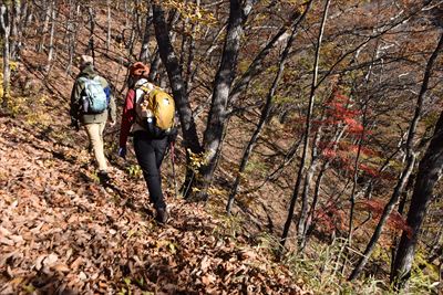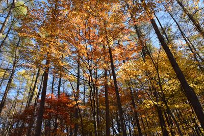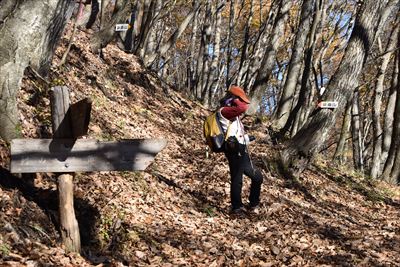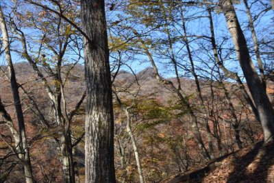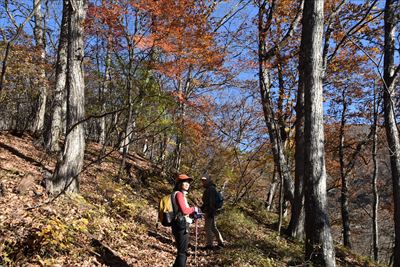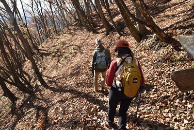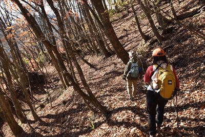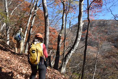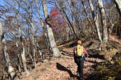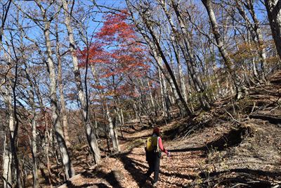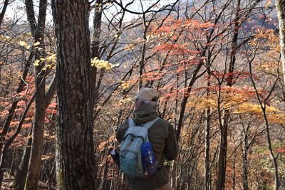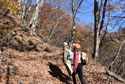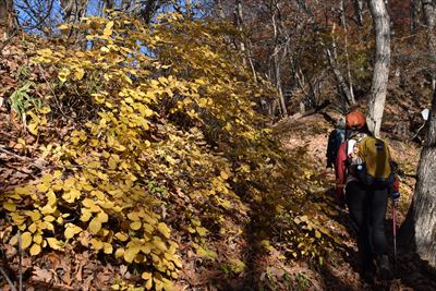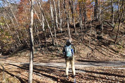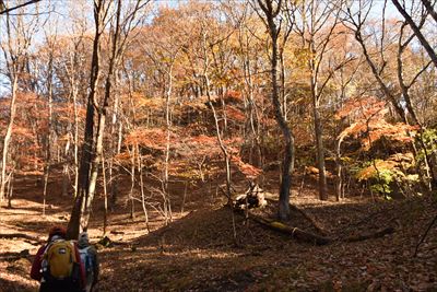 いきなり登山道を外れての紅葉狩り、車道はホイホイ坂の少し右(下)に出ました