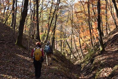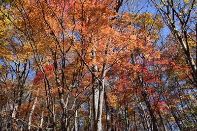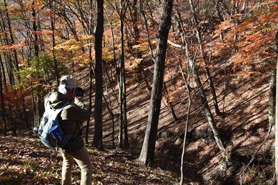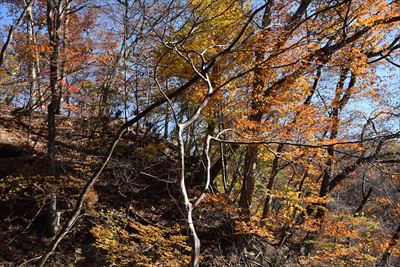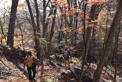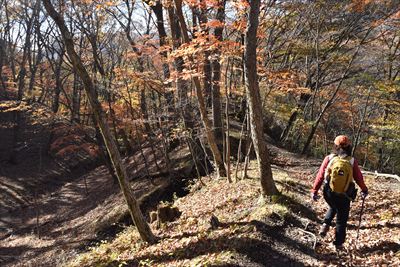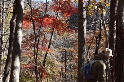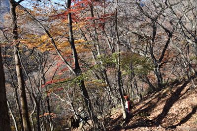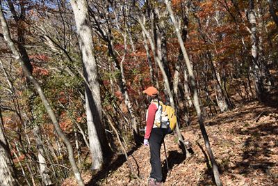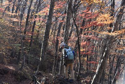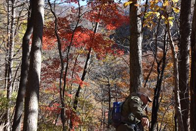 帰りも紅葉を求めて登山道を外れます