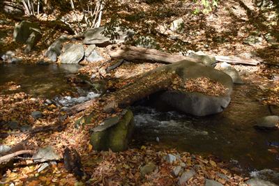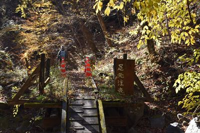 | 渡渉かと思ったら丸太の立派な橋ができてた (去年はなかったのでジャンプ!した) |