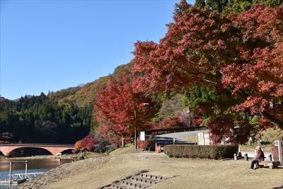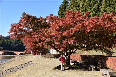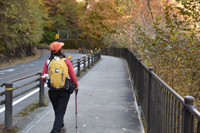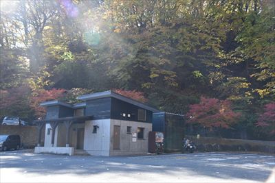 | 碓氷湖でトイレ休憩 ベンチの所の紅葉の見頃はあともう少し、だね Fさんは紅葉見に行ったようです、またね〜 |
