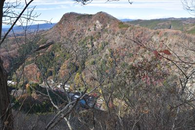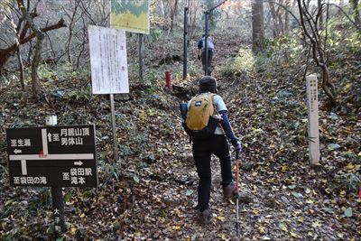 | 埼玉のふたりと塩原の男性が一緒に下りてきた、また写真撮ってあげたんだろうね 月居城跡に到着 一段上の三角点辺りの「月居山」表示がなくなっているのは前日に確認済みなので行きません |