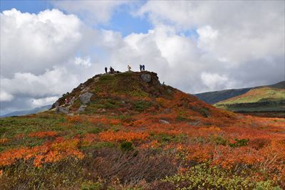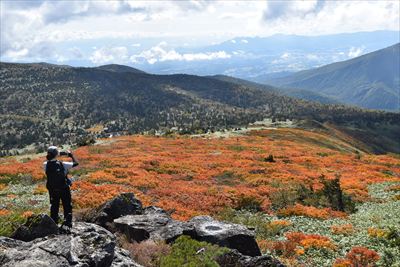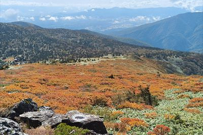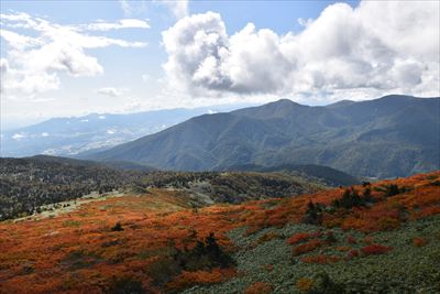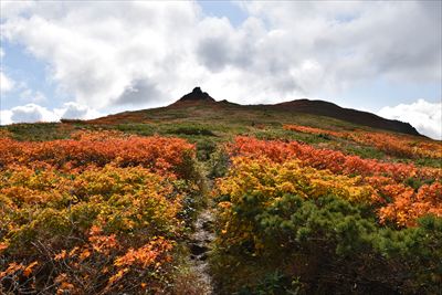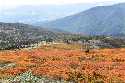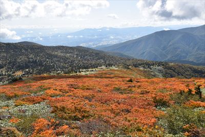 今年の三ツ石山の紅葉は赤よりオレンジ色が強いようです