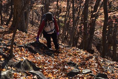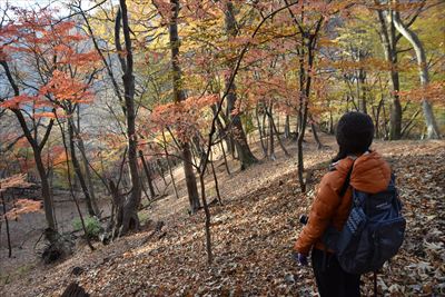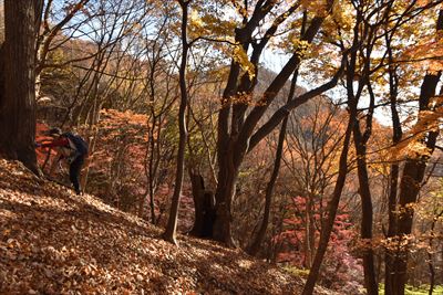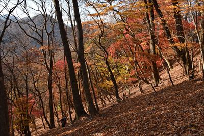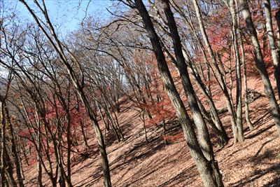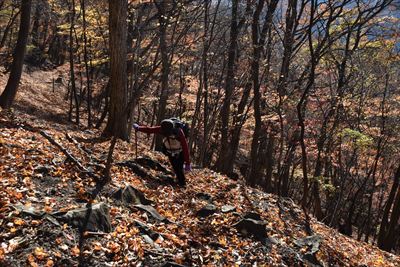 | 元々、ガレガレな坂ですが今年は落ち葉が半端なく多くて滑る滑る...登るのに難儀しました 右端まで行って大きく迂回するのがよかったようです その後も踏み跡に引き込まれ斜面を登るところを少し下ってしまい大変でした... |
