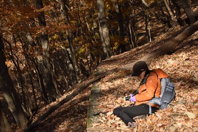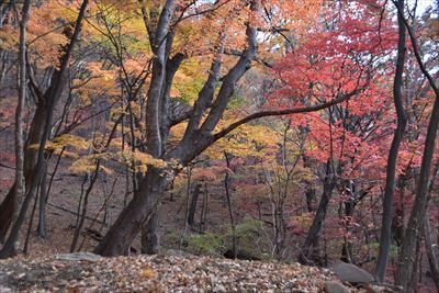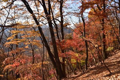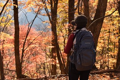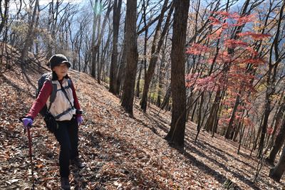 | 童謡「もみじ道」、去年は碓氷山(中尾山三角点)まででした。 今年は旧碓氷峠の見晴台まで行けるかな?紅葉は終盤ですが奥さんとふたりで歩いてみました。 |
