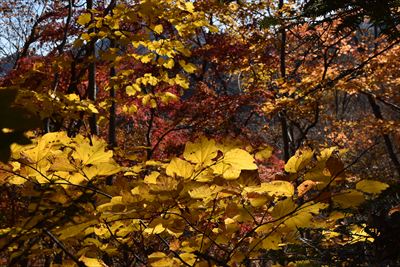 写真撮影には向かないかもしれませんが、ずっと紅葉を見ながらのんびりハイキング