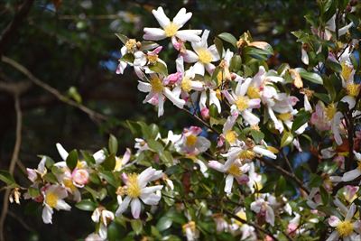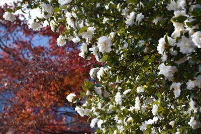 白の山茶花(サザンカ)がこれでもかと咲いてます