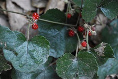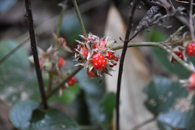 | かやまる隊のゴール地点に赤鬼&青鬼とか人形とか 旗華と思ったらバンダナでした 今回たくさん見られたのがフユイチゴという野いちご、食べられるそう 群馬では見たことないね |