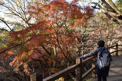 | 「もみじ谷」に到着、朝日の逆光できれいでした 写真は上手く撮れなかったけど... |
