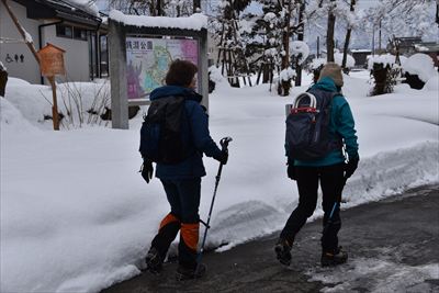 | 谷川岳PAでじゅんぽんさんとちょうど会えてびっくり。 (駐車場の手前の方に先日の事故で燃えた車がいくつも)) 登山口の神社の駐車場も登山者用?駐車場もちゃんと除雪されていないので、銭渕公園に駐車 午後から晴れる予報だけど曇り、チェーンアイゼン着用で出発 |