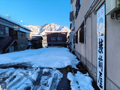 | 日帰り温泉は六日町の商店街にある「越前屋旅館」 秘湯ロマンで見た温泉です。500円/人。 男湯にふたりで、と言ってくれたのでお言葉に甘えて ※男湯が大きいし窓から坂戸山が見える。女湯は小さいし景色がない 源泉の温度が高いので塩ビパイプから滝の様にお湯を落として適温にしている 温泉ソムリエのWEBでは「ナイアガラ」と呼んでた いい温泉でした |